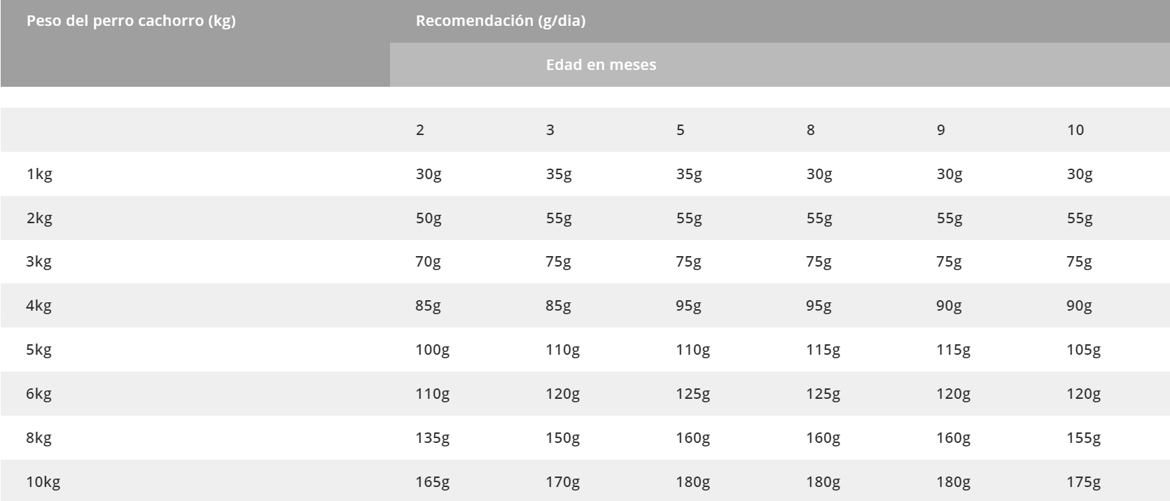 Las cantidades presentadas son orientativas y pueden variar según muchos factores. Ofrezca el alimento seco, en pote limpio, tres o cuatro veces al día y mantenga siempre agua limpia y fresca cerca de su cachorro. Caso su perro aún no esté comiendo BIOFRESH recomendamos que la sustitución sea hecha de forma gradual, durante 4 hasta 5 días. Consulte regularmente al médico veterinario . Biofresh Cachorros también se indica para hembras adultas a partir de la sexta semana de GESTACIÓN y durante el período de LACTANCIA.